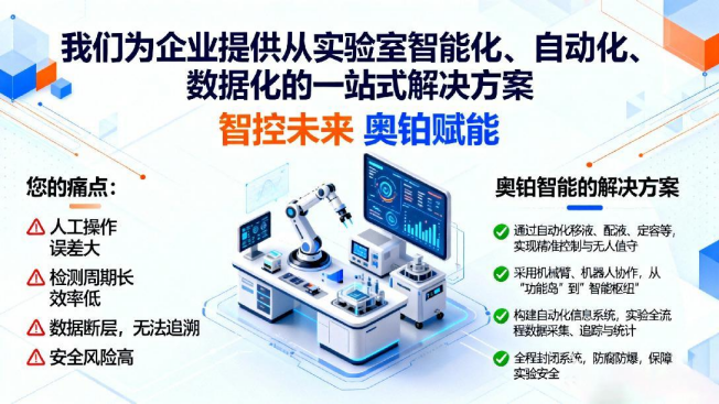 智能实验室的核心不是“机器换人”,而是通过 “设备 + 系统 + 场景” 的深度融合,实现数据的精准生成、高效流转与智能应用。这正是奥铂智能解决方案的核心逻辑。